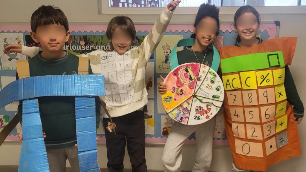 International Maths Pi Day was marked this year bigger than ever before, including children from EYFS, Primary, to Secondary in an interactive day of mathematical thinking and creativity organised by Miss Larkin, Primary Head of Maths, and Ms Bala, Secondary Maths Director. From miniature Einsteins complete with wild hair to Rubik’s cubes, pupils embraced the spirit of the day and showcased how fun and expressive maths can be. Classrooms and corridors were transformed into a festival of numbers as children arrived in imaginative maths-themed fancy dress.