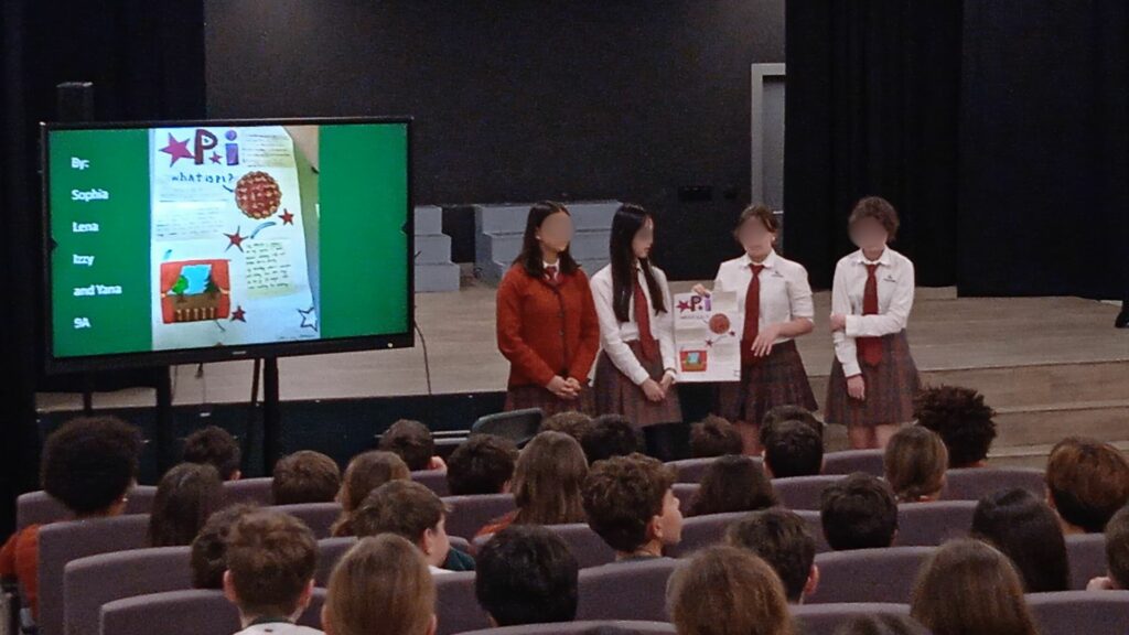 Secondary students fully embraced the excitement of Pi Day with a variety of engaging and fun-filled activities. Each morning, they were welcomed into registration with mind-boggling puzzles, clever jokes, and brain teasers designed to stretch their thinking and kickstart their day with a spark of mathematical curiosity. After school, the creativity continued with a maths-themed bake sale, where students wowed everyone with their imaginative cakes and baked treats inspired by numbers and mathematical concepts. The day also featured a thrilling Pi reciting competition, with a representative from every class from Year 7 to Year 9 standing in front of their peers to recite as many digits of Pi as possible. It was an impressive display of memory and focus, culminating in our winner, Maya Prieto Wood in year 8, who astonishingly recited Pi to 143 places, earning cheers and admiration from the whole secondary school.